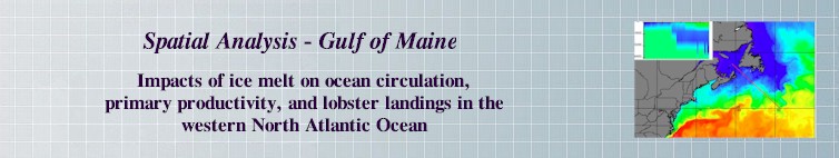| Demonstration of a proposed project to study connections between freshwater production due to summer-time ice melting and lobster landings in the western North Atlantic. This project offers a data fusion platform to connect, integrate and analyze the impacts of climate change on the United States and Canadian lobster fishery. | ||||||||